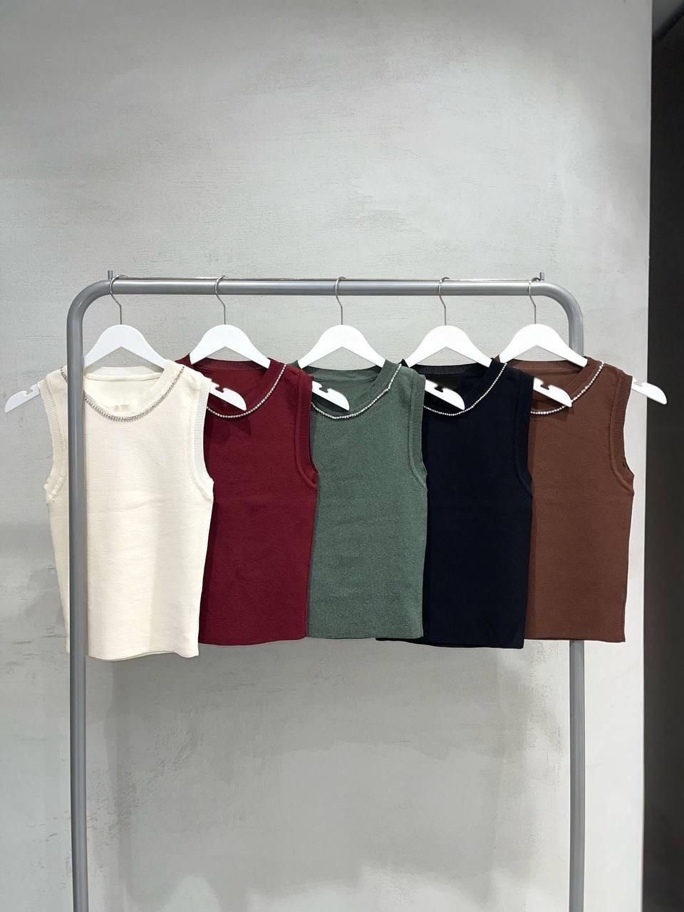 Opgrader din basisgarderobe med denne elegante korte top fra GUAS. Toppen er designet i en tætsiddende ribkvalitet, som giver en flatterende pasform og høj komfort. Den er uden ærmer og har en rund halsudskæring, der er pyntet med en smuk perledetalje, som tilføjer et feminint og eksklusivt touch til det ellers enkle design.