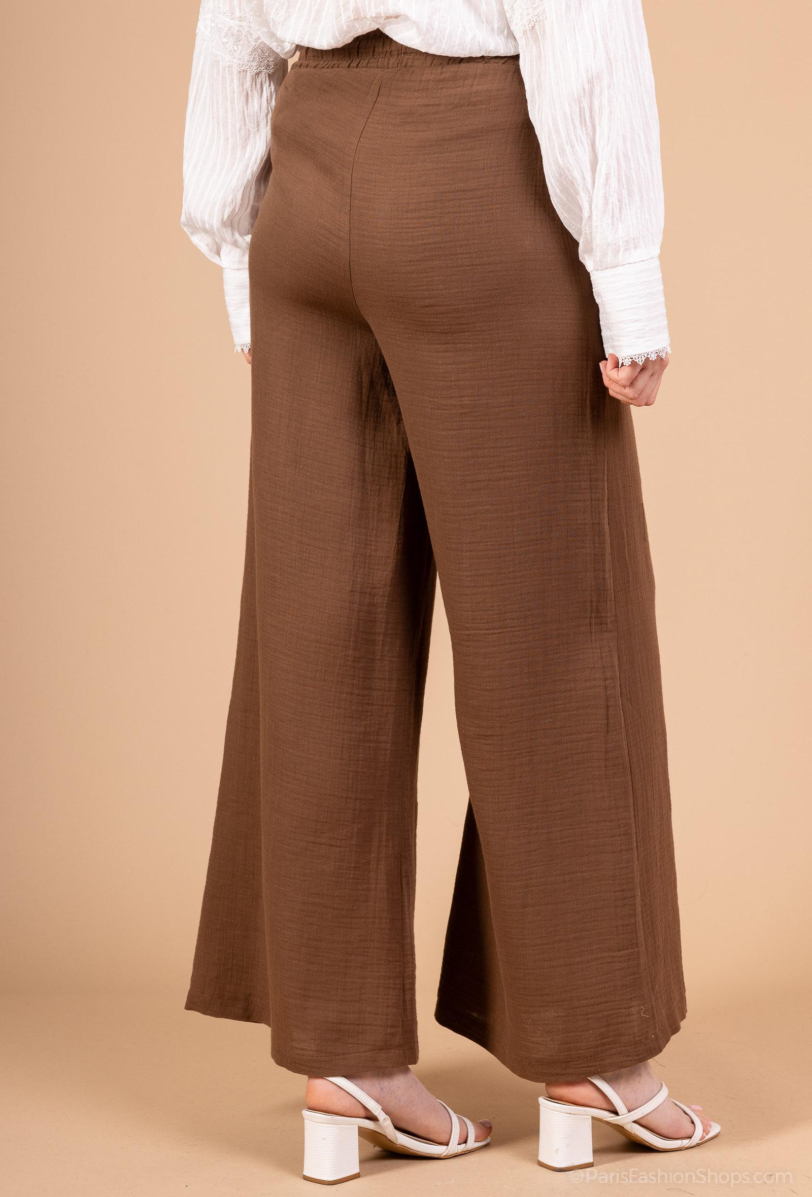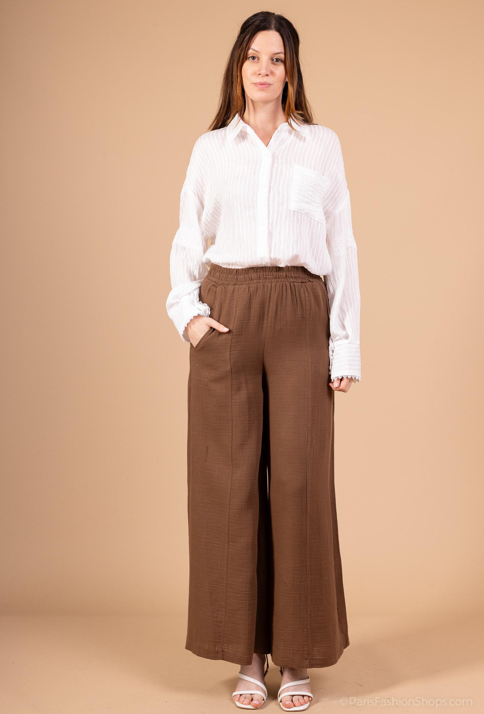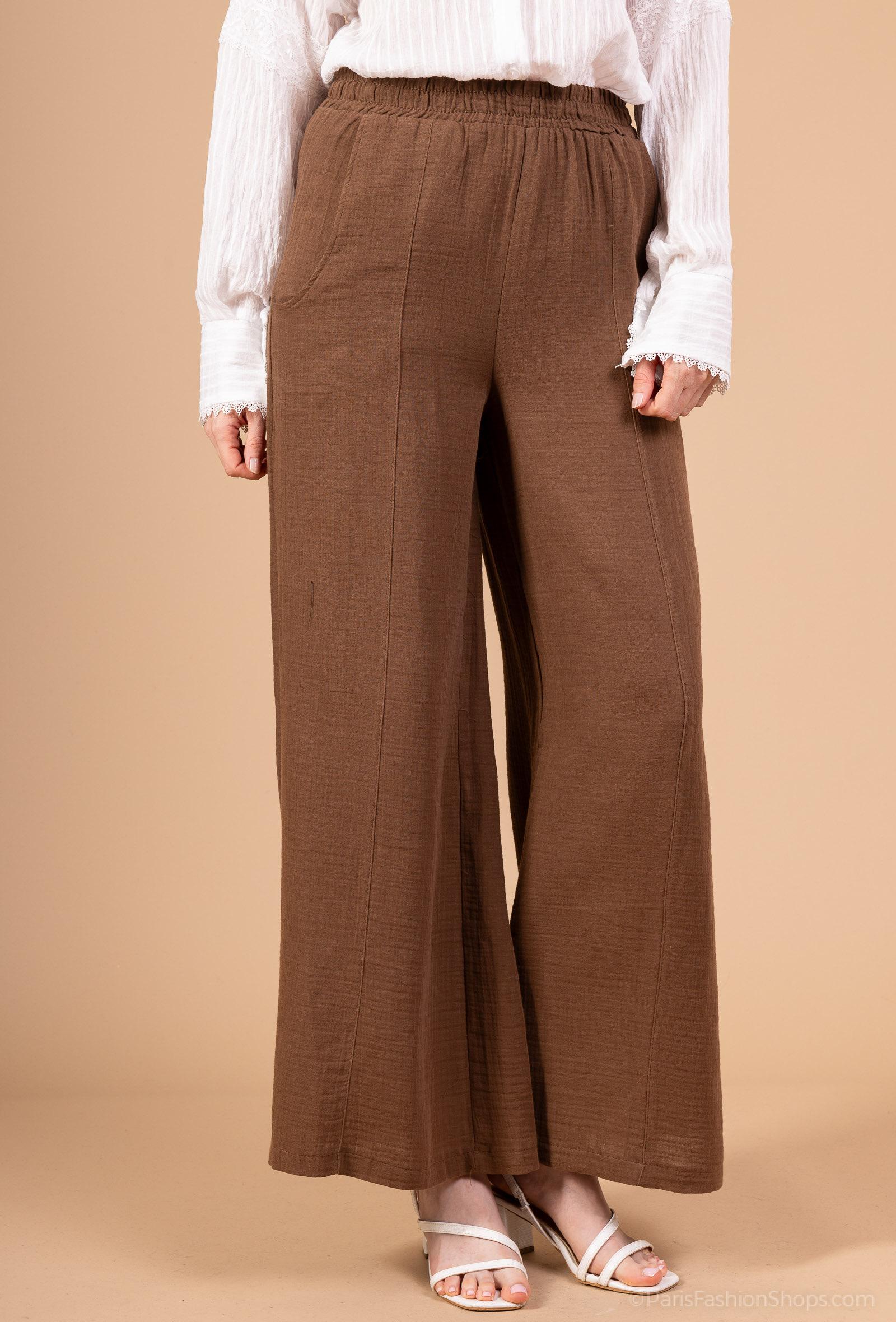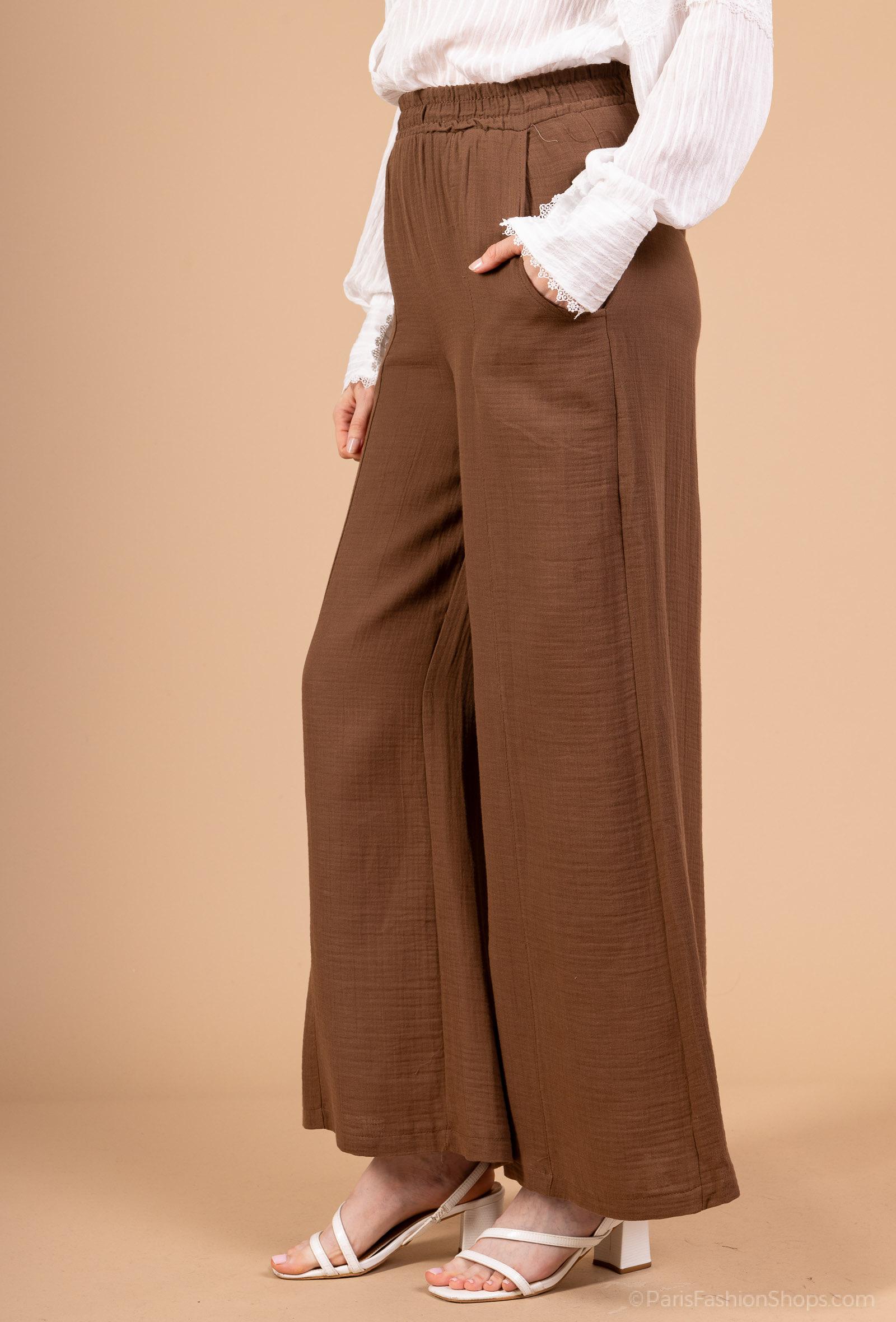 De kommer i en flot brun farve, der er nem at style med både lyse og mørke toppe. De diskrete lommer i siderne tilføjer funktionalitet, mens det lette stof giver et elegant fald.