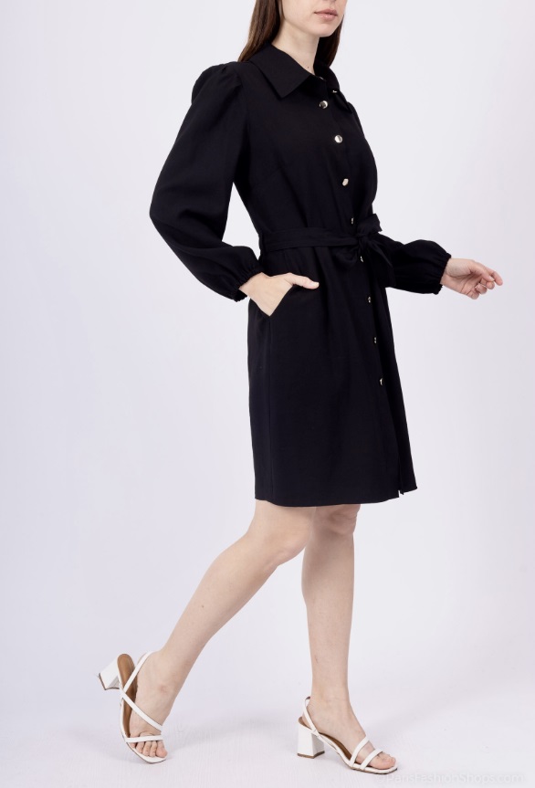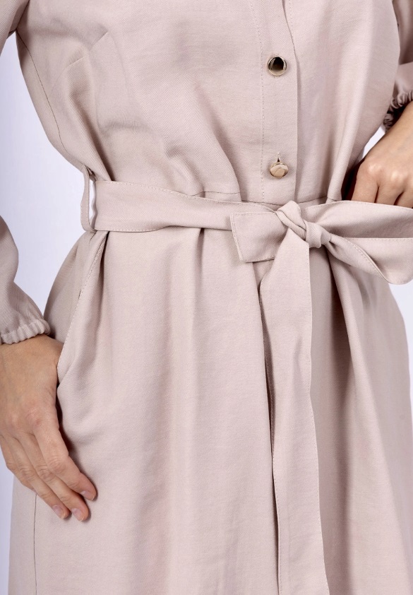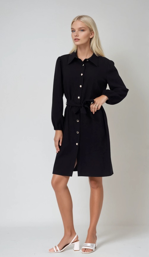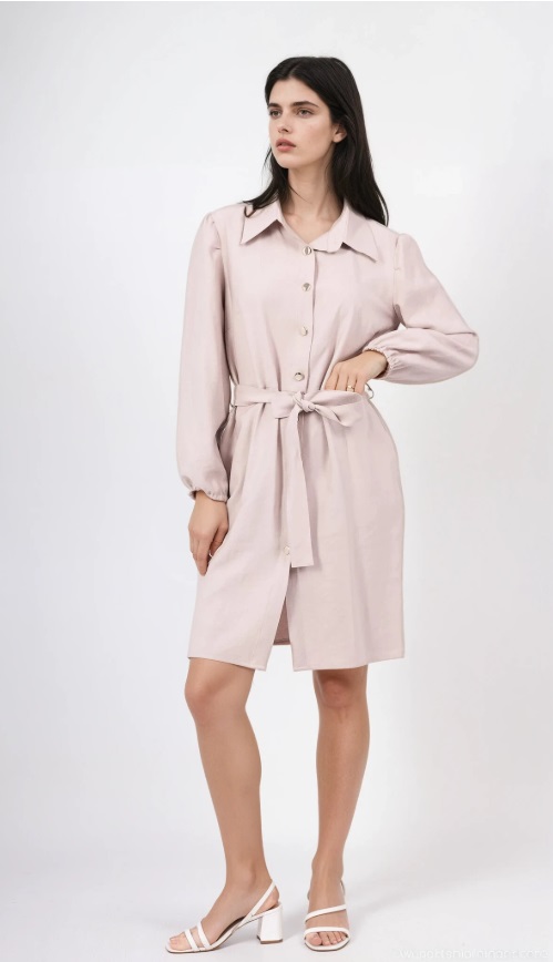 Lange ærmer, skjortekrave, knapper foran, aftageligt bælte