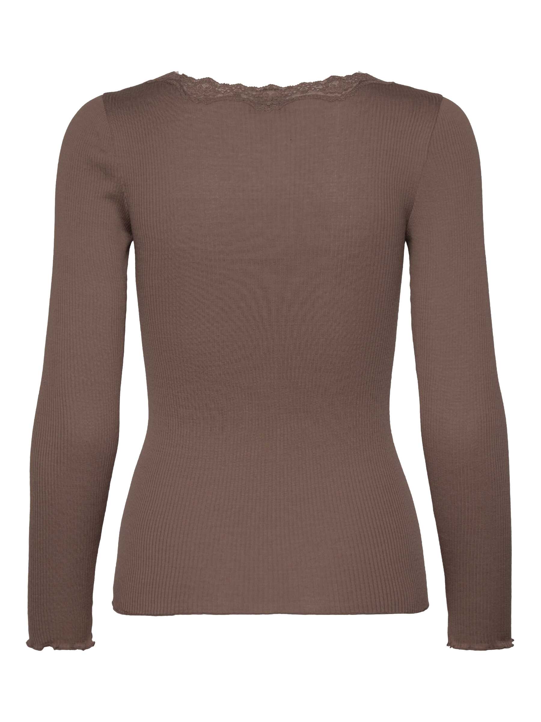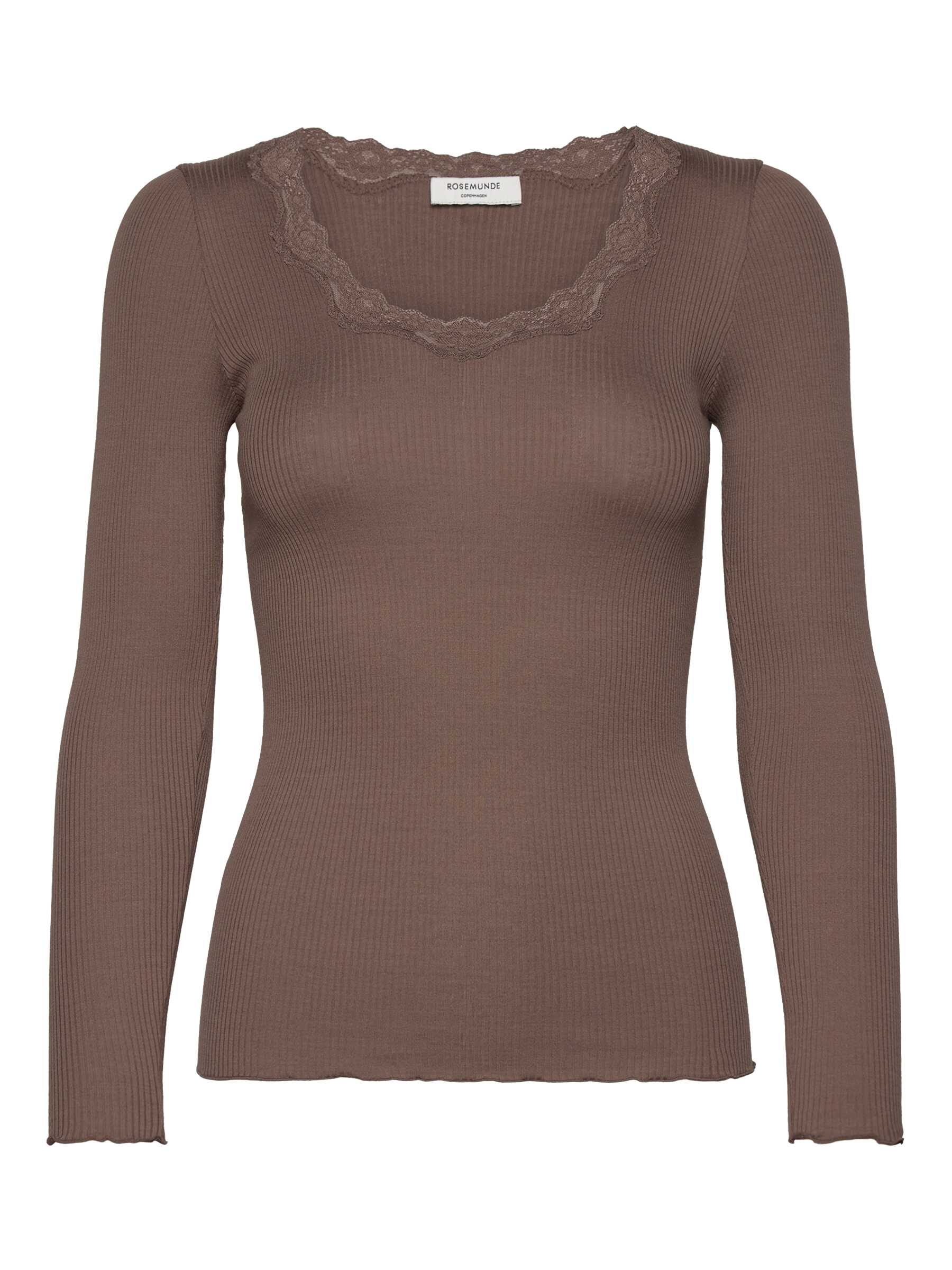 Elegant og feminin bluse fra Rosemunde i en ribbet kvalitet med smukke blondedetaljer. Perfekt til både hverdag og fest, hvor du ønsker et tidløst og sofistikeret look.