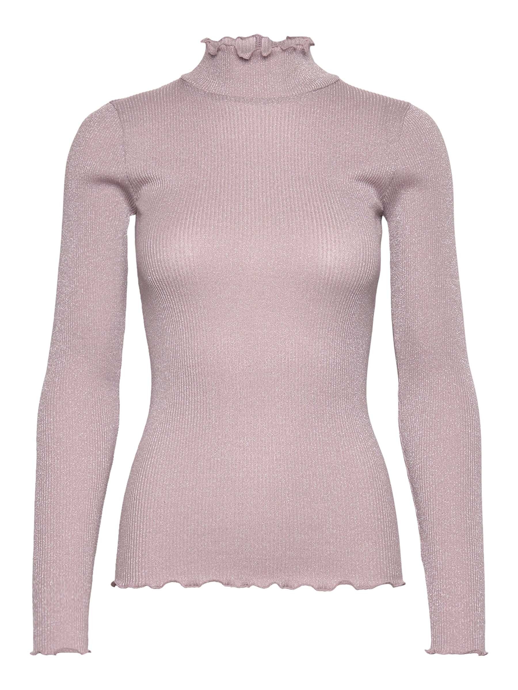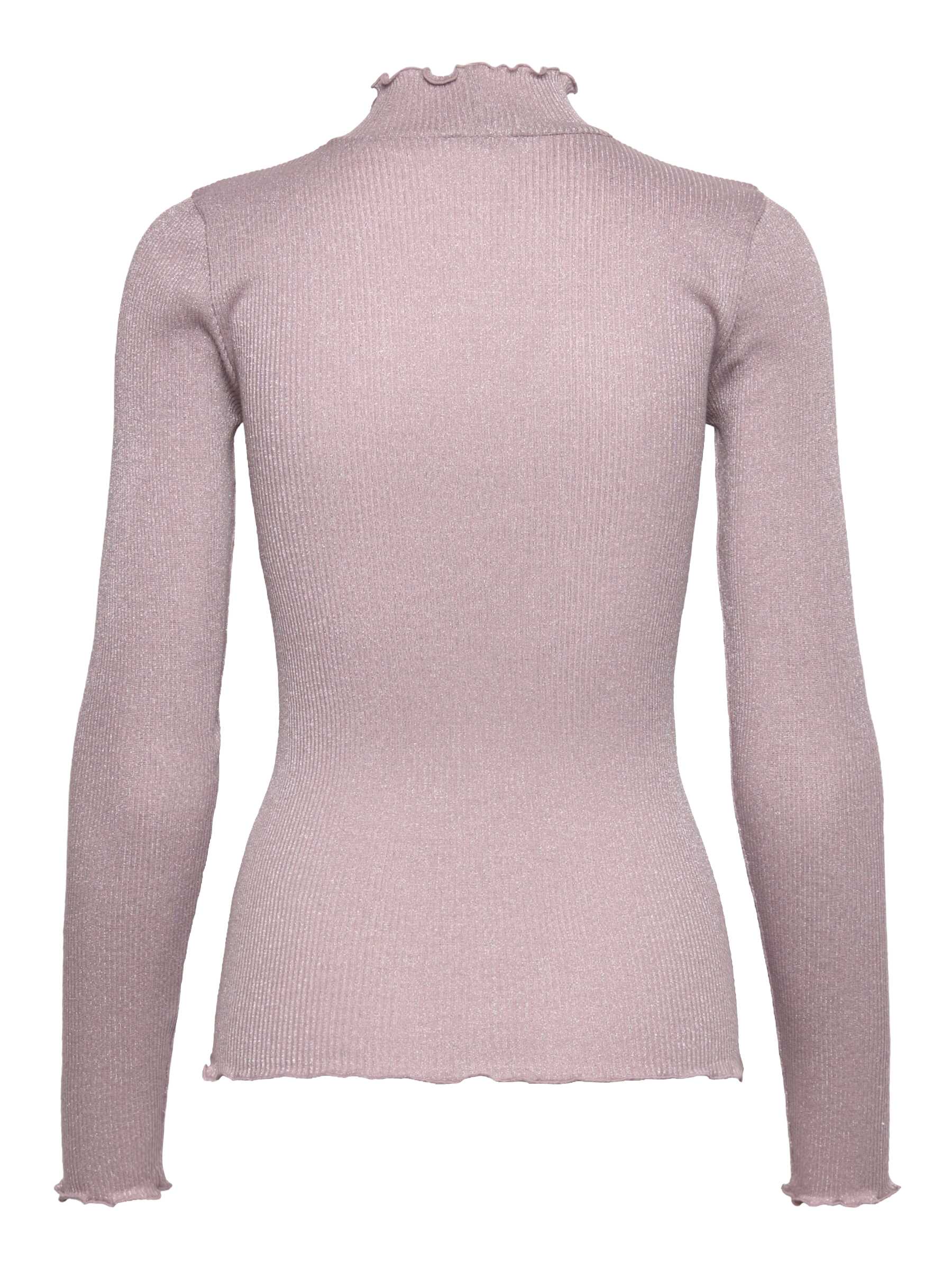 Elegant og feminin T-neck bluse fra Rosemunde, designet i en tætsiddende pasform med fine flæsekanter ved halsudskæring, ærmer og bund. Den let skinnende struktur giver et eksklusivt udtryk, som gør blusen perfekt både til hverdagsbrug og til festlige anledninger.
